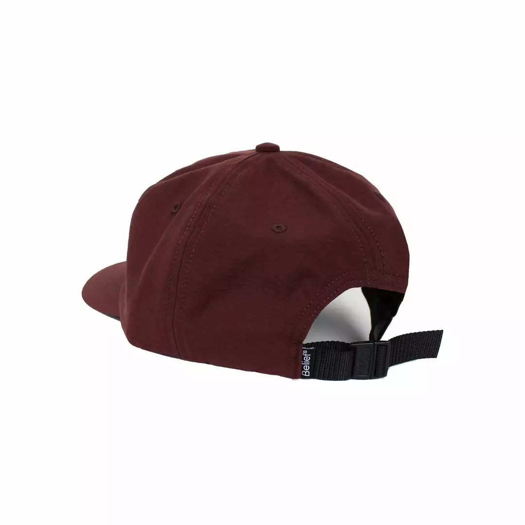 Slightly bent brim, webbing clip closure.